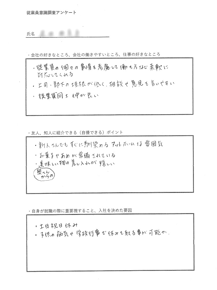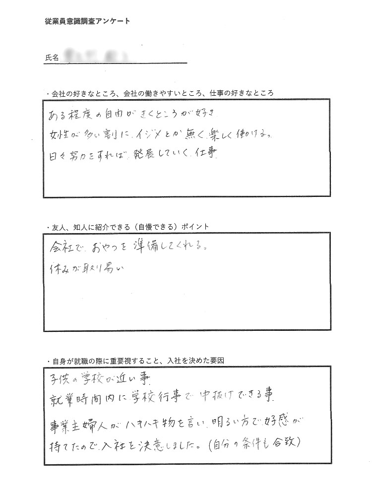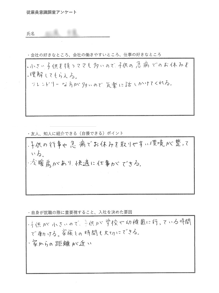 子育て経験者の女性が多いので子供の病気や学校行事でのお休みに対して寛容