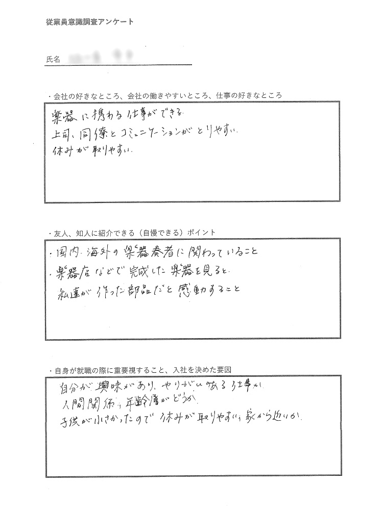 有名メーカーの楽器の一部を自分が担っているという誇りを感じられるところ